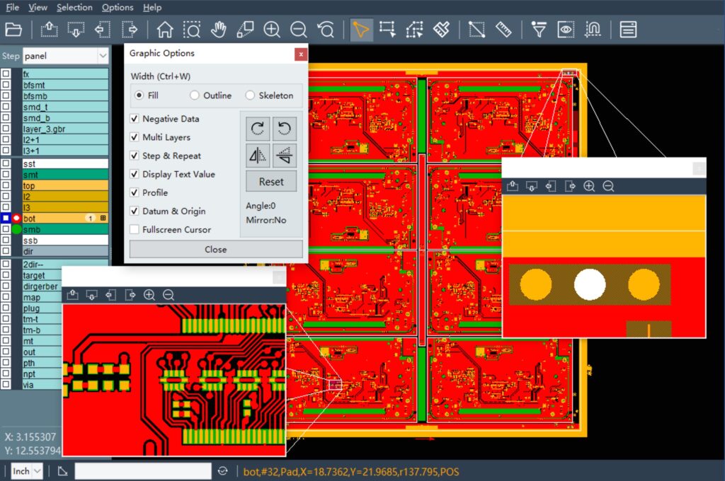 OpenCAM是由無錫東領智能科技股份有限公司開發的一款輕量級PCB CAM圖形查看器?;贑++開發,具有超高的圖形顯示效率,完全支持ODB++8.1格式。